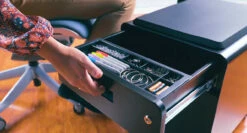 With 360-degree swivel casters, this cabinet rolls easily wherever you need it. If you need a change of scenery—or you’re moving up in the world and need a new office to go with it—this portable storage solution will follow. When you’re ready to use your cabinet, lock the casters to keep the pedestal from rolling away when you close drawers, or when a visiting coworker sits on it.
