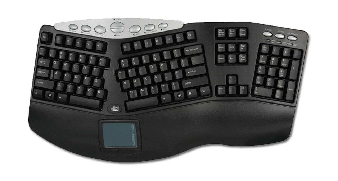Enjoy a contoured and split keyboard that fits to your body, and not the other way around. The Adesso Tru-Form Pro Ergonomic Keyboard assists in bringing your arms and wrists into the correct ergonomic typing position easily, letting you work without repetitive stress injuries or fatigue to slow you down.