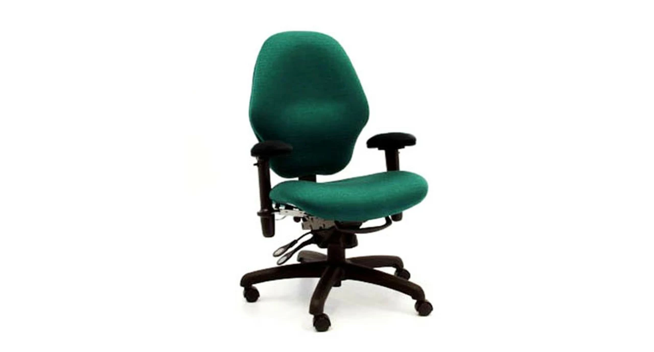 - A pneumatic cylinder adjusts the seat cushion height to fit petite to tall users