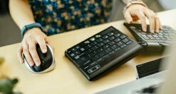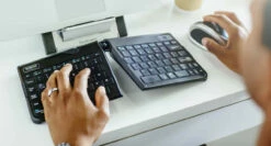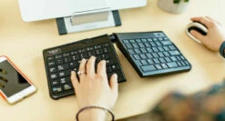 This split design keyboard easily pairs with Bluetooth compatible devices and is portable so you won’t have to deal with arm strain and tension that occurs after hours of computer work.