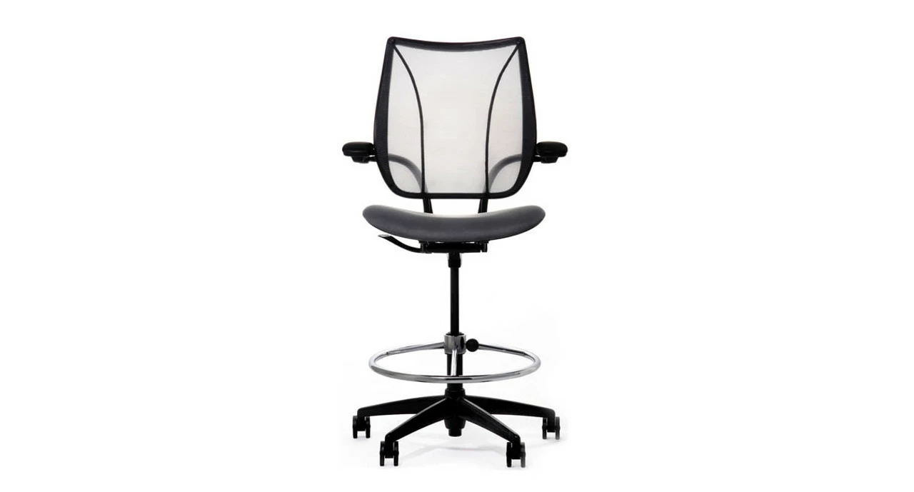 Give your seating situation the boost it needs with the Humanscale Liberty Drafting Chair, which offers the same ergonomic features and comfort as the Liberty Chair, with an even greater height range and a foot ring for use at a drafting table or standing desk.