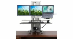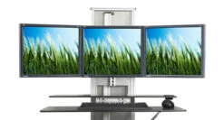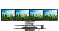 Move all of your monitors vertically to their correct ergonomic positions with the sturdy electric powered One-Touch Ultra and transform your desk into a sit-stand workstation easily with the press of a button. Built-in wire management, two integral worksurfaces for mouse and keyboard placement, and grommet, wall, and desk clamp mounting options all come together to alter your desk for the better. Get ready to elevate up to four monitors for better work, on your level.