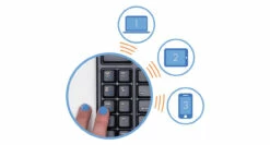 Bluetooth connectivity on the Kinesis Freestyle2 Blue, Multichannel Bluetooth Keyboard for Mac means you can pair with up to three devices easily. This model was designed for use with Mac, with Mac-specific hotkeys to keep you typing at maximum efficiency all day.