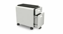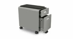 Easy on the eyes, its rounded corners are also safer for you, reducing the risk of bumps if you ever collide with anything as you’re moving the cabinet around the office. Four locking casters make this mobile and a fifth support caster on the front offers additional support for sitters.