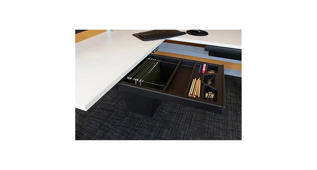 Spacious, secure, and lockable, the Pelican Drawer by SpaceCo is one under-desk accessory that can add much more usable space to your desk right away. The deep well in the back is large enough to hold hangable file folders, laptops, and purses, while the front is perfect for all of those pens that keep adding up on your desk. Banish disorganized desks for good with this handy sliding drawer.