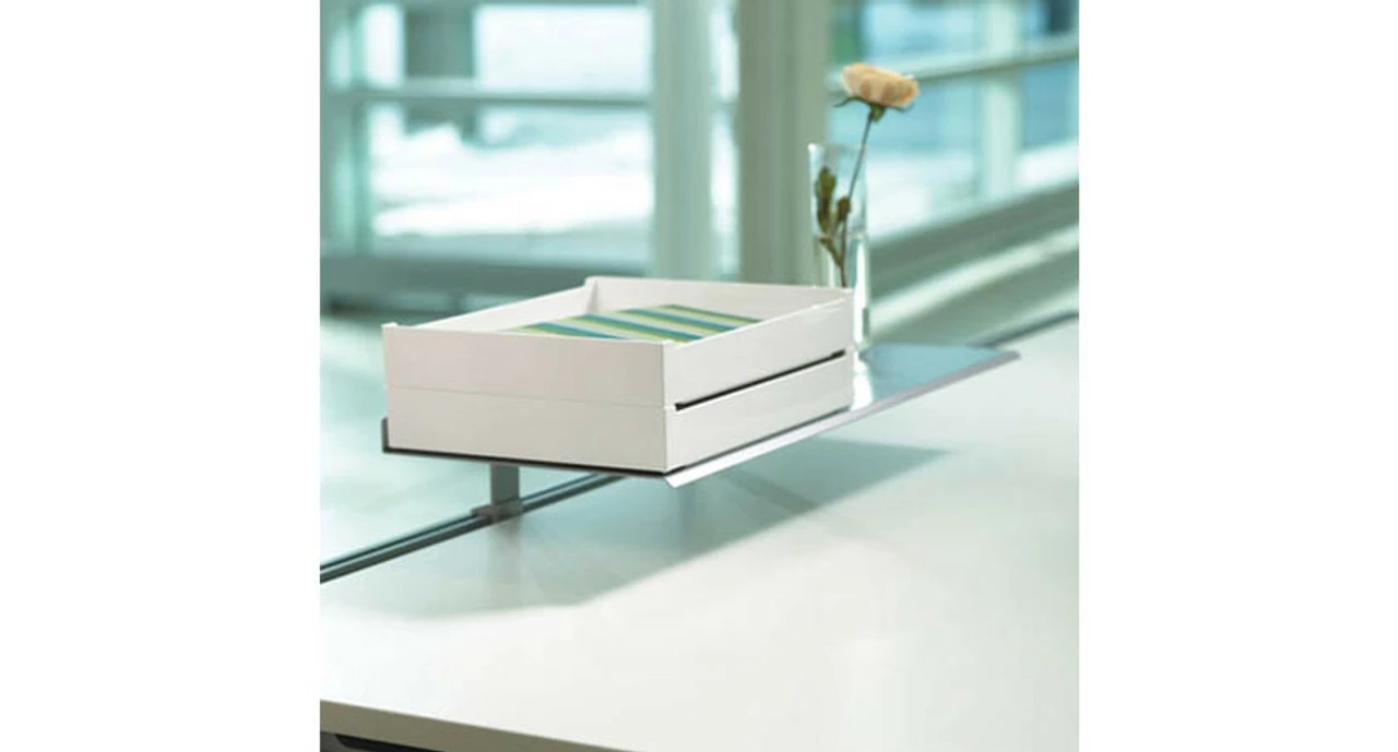 The Steelcase SOTO Worktools Shelves free up much-needed desk space so you can focus on your next big task. When used with the Steelcase SOTO Worktools Rail, these efficient shelf units provide extra space above the desk upon which you can organize papers and personal items.