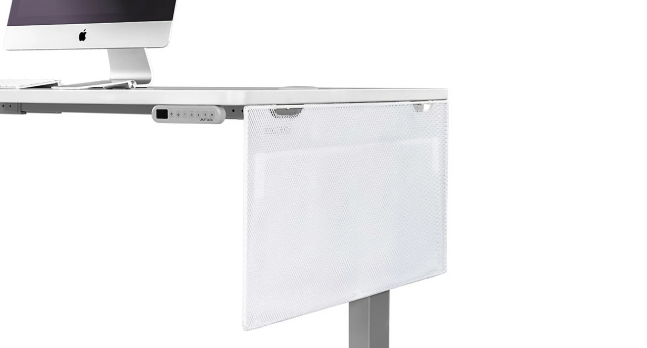 Open area workspaces are a feature in many modern offices, but what do you do with all of your under-desk action? Keep cords, cables, and attachments out of sight and your desk setup looking tidy with the UPLIFT Desk Modesty Panel with Wire Management system.