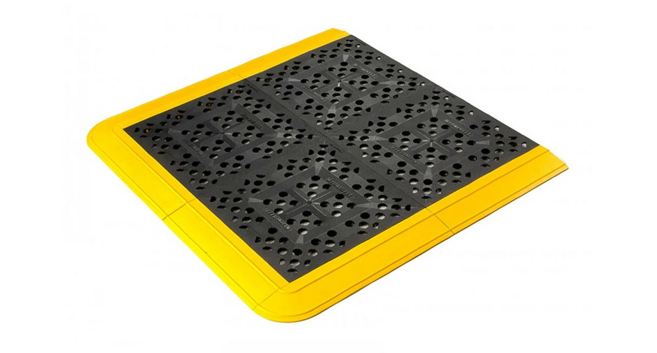 Wearwell 540 FIT Open Grid Functional Interlocking Tiles were designed so that businesses could create long swaths of ergonomic flooring for their workers to stay safe and comfortable. Wearwell 540 FIT Tiles snap together easily and stay in place with patented LockSafe technology. These tiles are intended for wet or dry applications, with holes for superior slip-resistance and drainage properties.